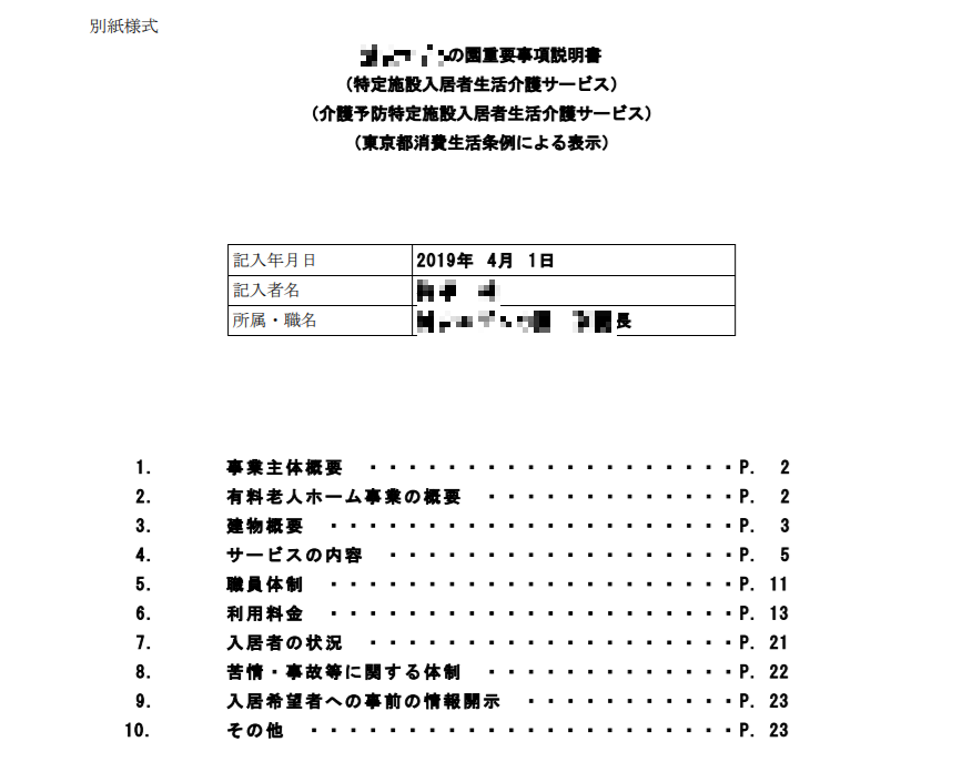 いくつかの施設の重要事項説明書を読んでみると、それだけで、施設の利用者への誠意や事業への使命感の違いがたちどころにわかります。
