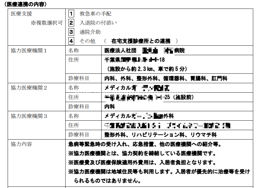 重要事項説明書の各項目に真摯に向き合いていねいに記入している施設は、設備やサービスに対する自信であったり偽らない正直さの現れでもあり、利用者の立場に立った施設と言うことができます。